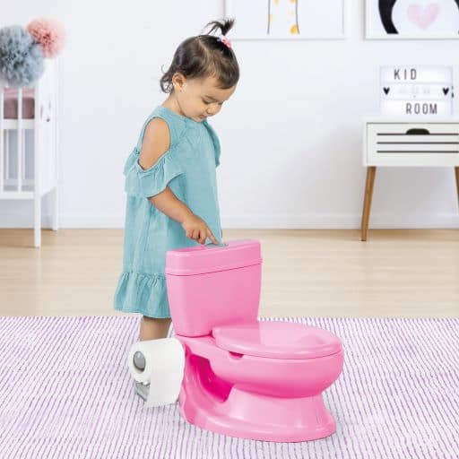 Pot de toilette éducatif Rose de la marque Dolu. Avec son de chasse d’eau et bac de rangement ainsi que le pose papier de toilette. Le pot de toilette pour bébé est un accessoire très pratique pour effectuer la transition de la couche vers une relative autonomie. L’apprentissage de la propreté doit se faire en douceur et au rythme de chaque bébé. En moyenne, les enfants commencent à contrôler leurs désirs d’aller au toilettes vers l’âge de 2 ans. La marque Dolu produit aussi d’autres articles pour la sécurité et le confort du bébé. En Expliquant et en éduquant son enfant sur son utilité avec des mots simples, l’enfant comprendra rapidement qu’il grandit et aura donc rapidement l’envie de faire comme les grands.
